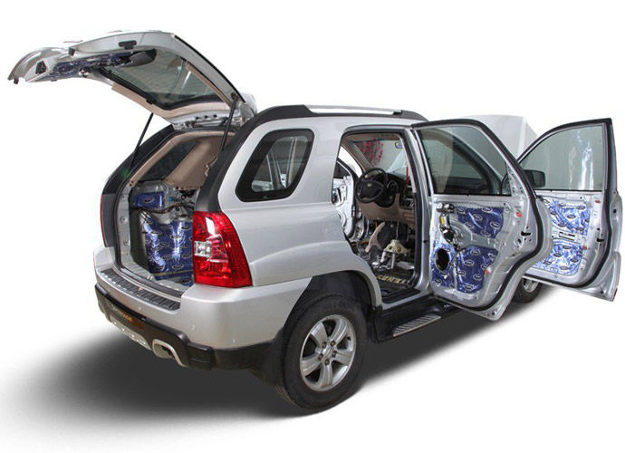 材料選擇——板棉結(jié)合隔音材料基本分為兩種,制振板和吸音棉。車的噪音來(lái)源基本分為兩部分,一個(gè)是車本身的振動(dòng),一個(gè)是車的噪音。制振板的目的是降低振動(dòng),吸音棉的目的是吸音。所以,比較合理的施工方案